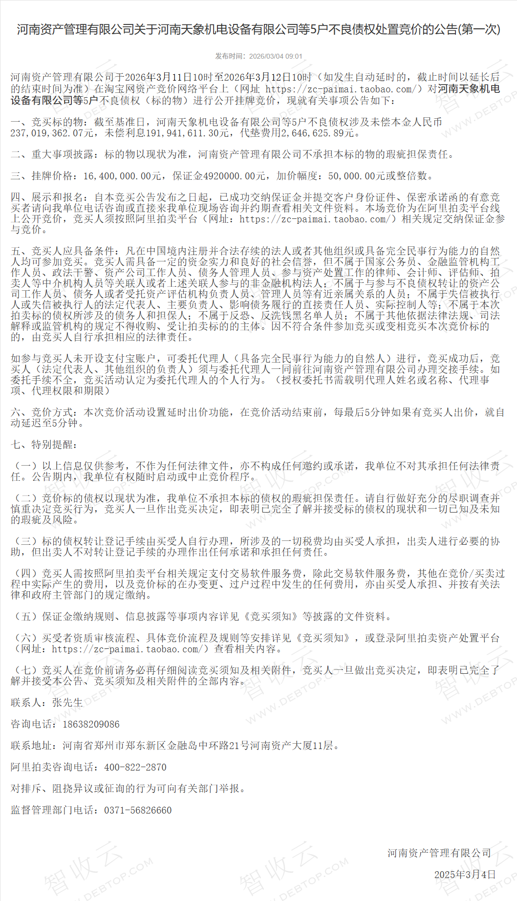来源:河南资产管理有限公司(阿里资产) 公告日期:2026-03-04
