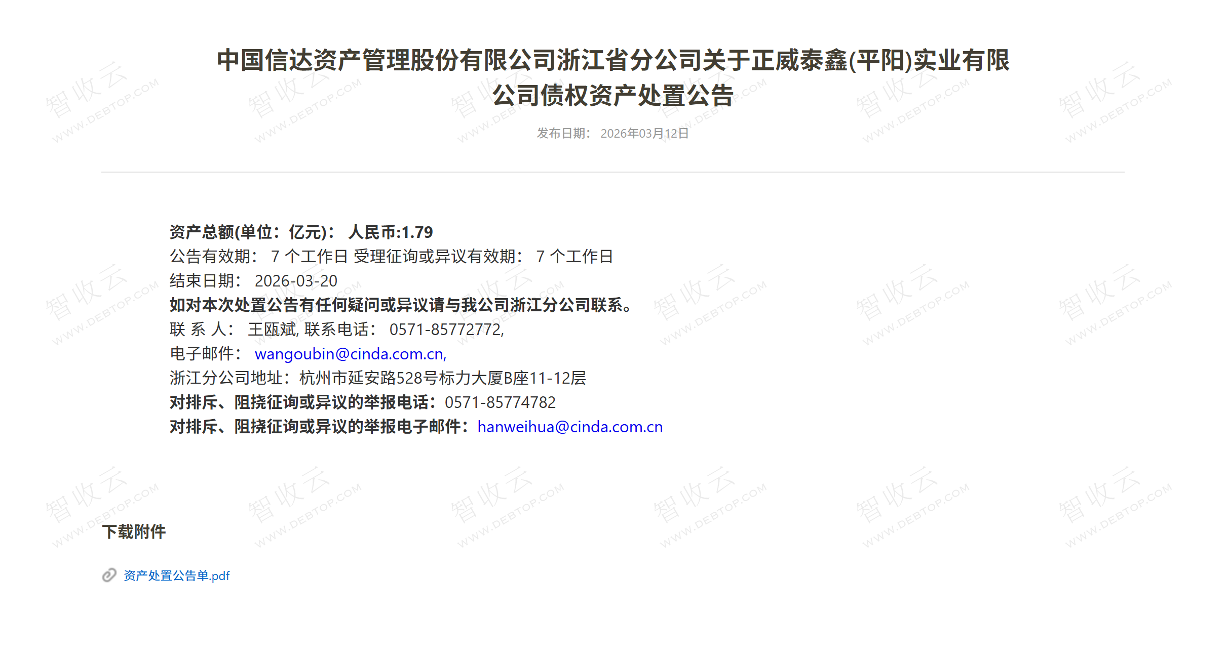 来源:中国信达资产管理股份有限公司浙江省分公司(京东资产) 公告日期:2026-03-12