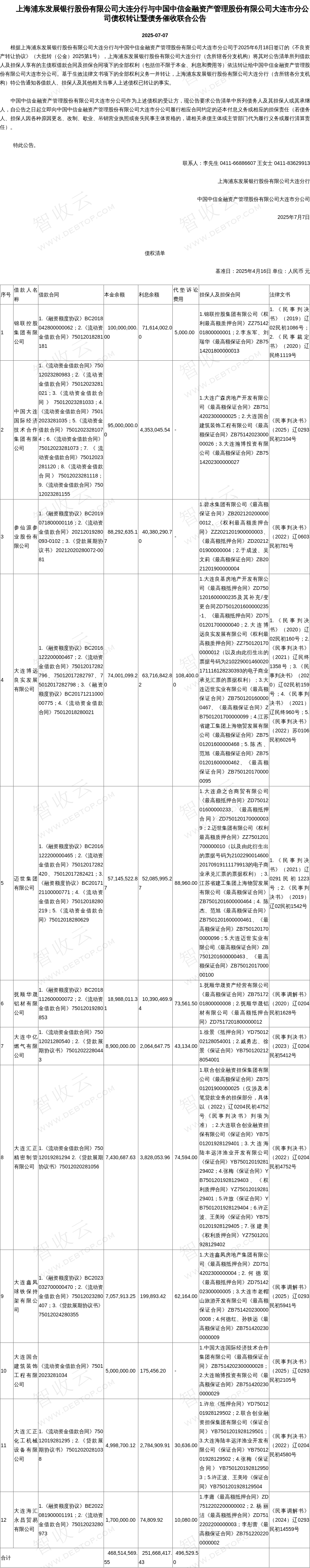 锦联控股集团有限公司,迈世集团有限公司,上海浦东发展银行股份有限公司大连分行与中国中信金融资产管理股份有限公司大连市分公司债权转让暨债务催收联合公告,公告日期:2025-07-07,转让方:上海浦东发展银行股份有限公司大连分行,受让方:中国中信金融资产管理股份有限公司大连市分公司,资产总额:72068.0万元。