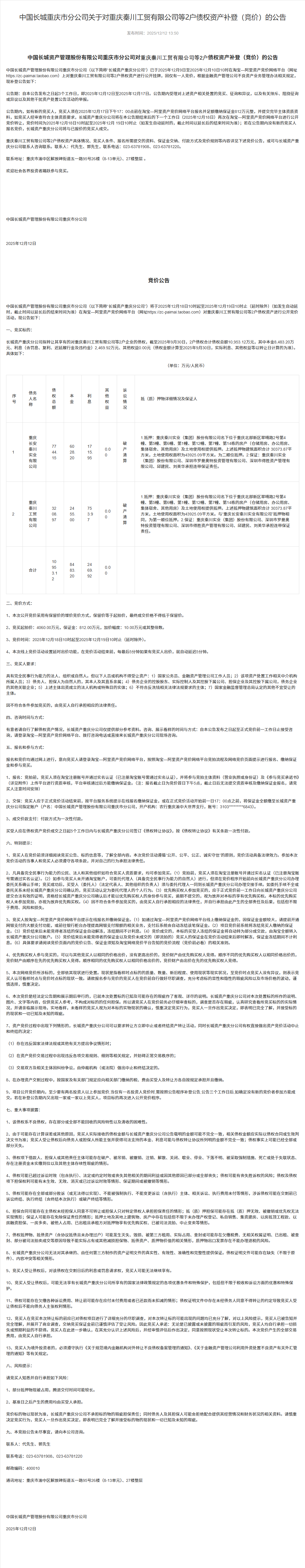 来源:中国长城重庆市分公司(阿里资产) 公告日期:2025-12-12