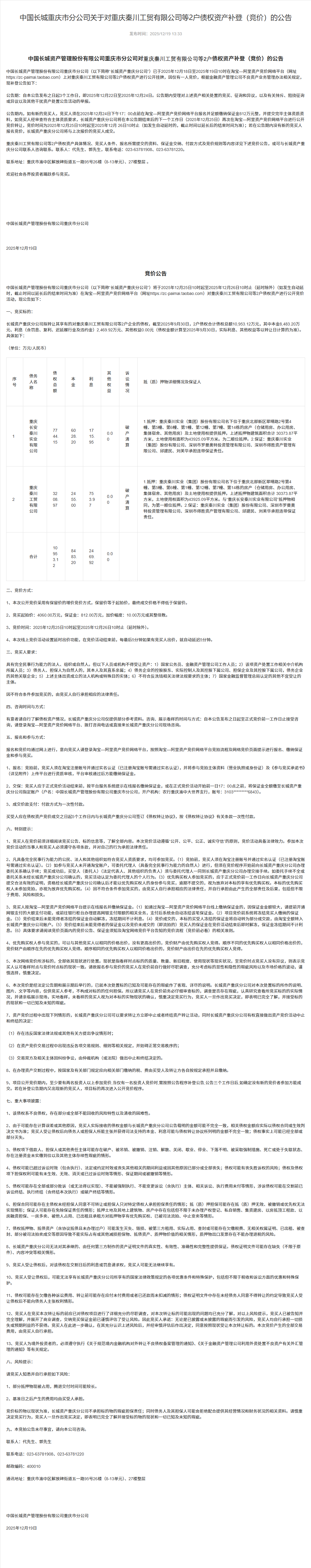 来源:中国长城重庆市分公司(阿里资产) 公告日期:2025-12-19